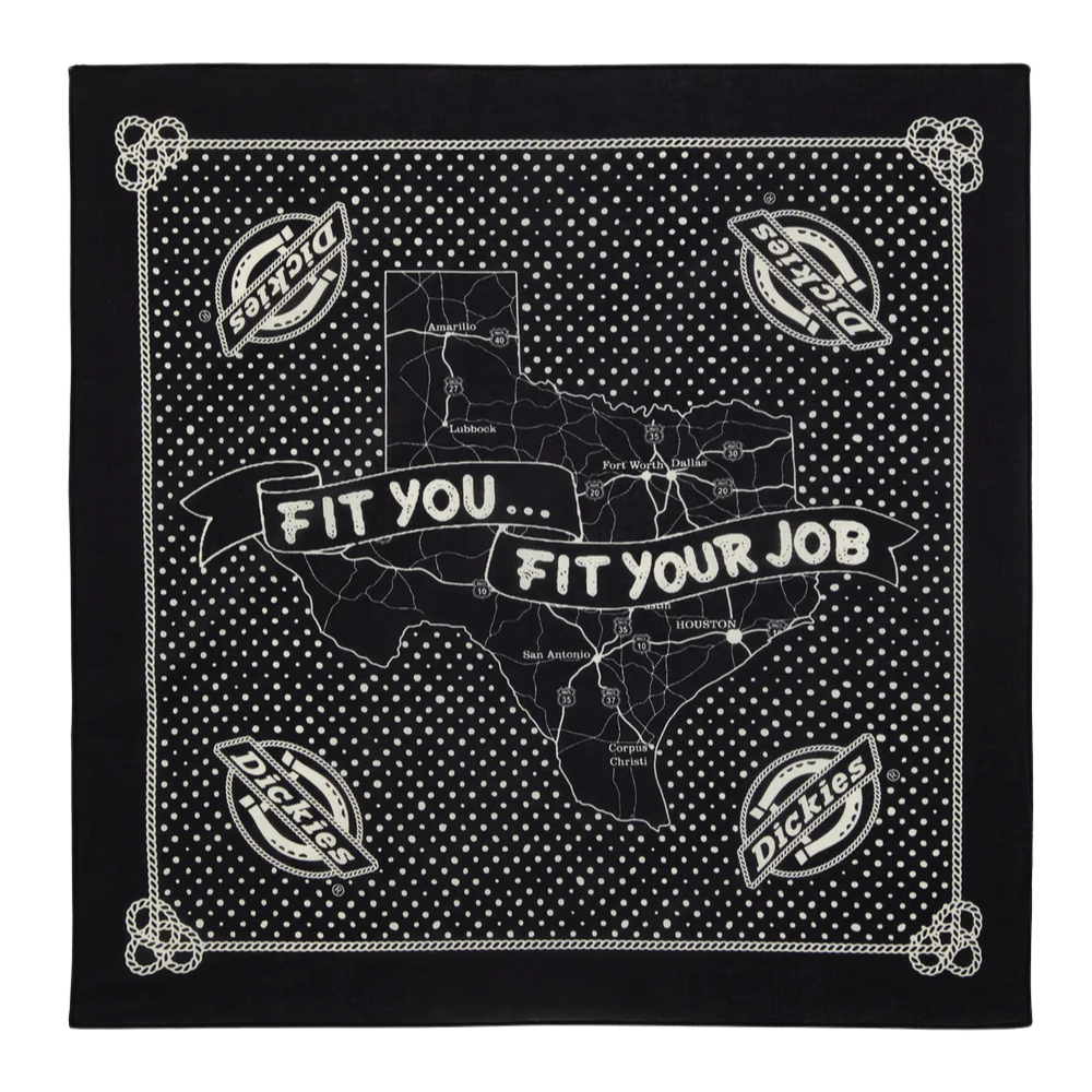 Αναβάθμισε το στυλ σου με την μπαντάνα Dickies Slayden. Κατασκευασμένη από 100% βαμβάκι, σε διάσταση 68 × 68 cm, το σχέδιό της διαθέτει τη σήμανση Dickies σε κάθε γωνία και μια vintage-εμπνευσμένη χαρτογραφία ως print. Απαλή και ελαφριά στο δέρμα, μπορεί να φορεθεί ως head wrap, μαντήλι λαιμού, κάλυμμα προσώπου ή ως εξάρτημα σε τσάντα.