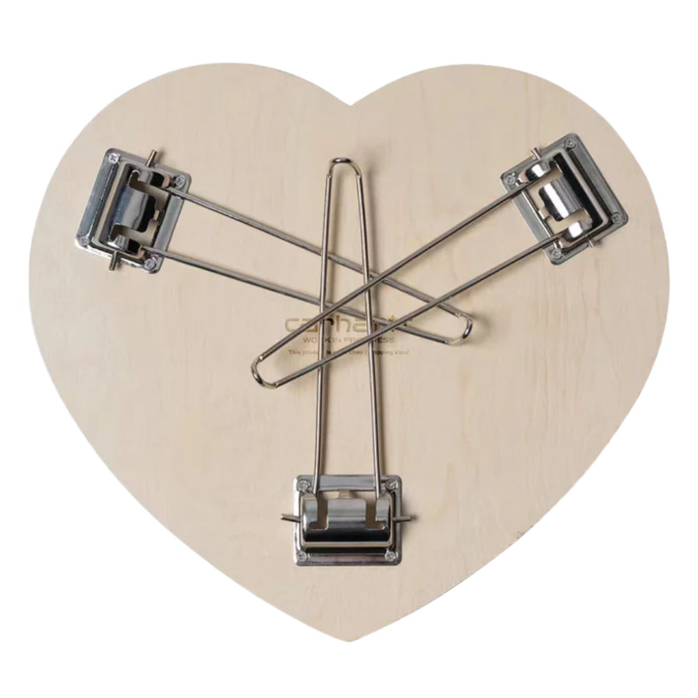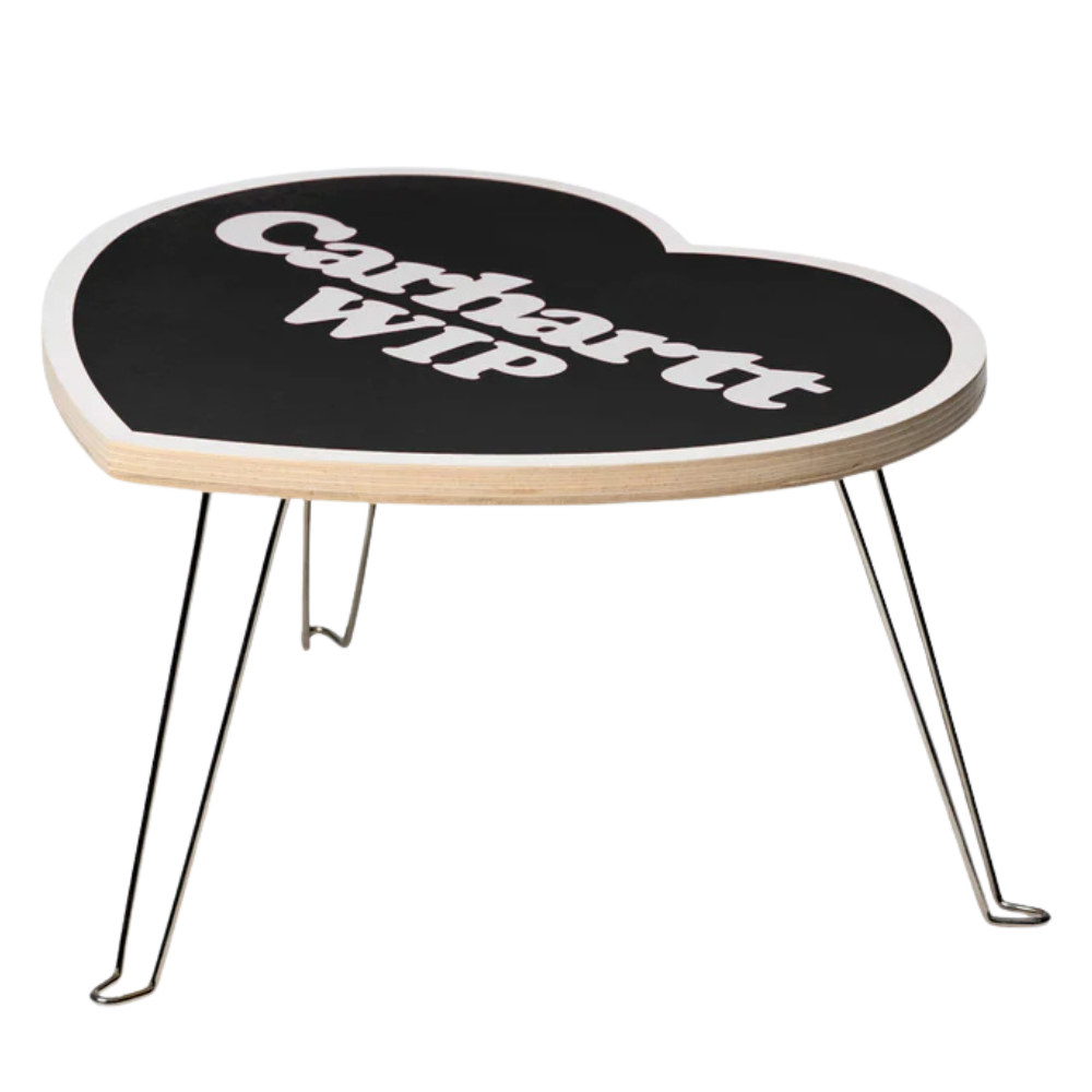 The Carhartt WIP Heart Folding Table is made from birch plywood in the shape of our archival Heart motif and features a graphic print on the surface. The table top rests on foldable iron legs.