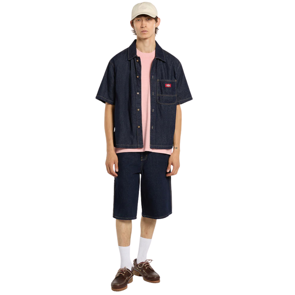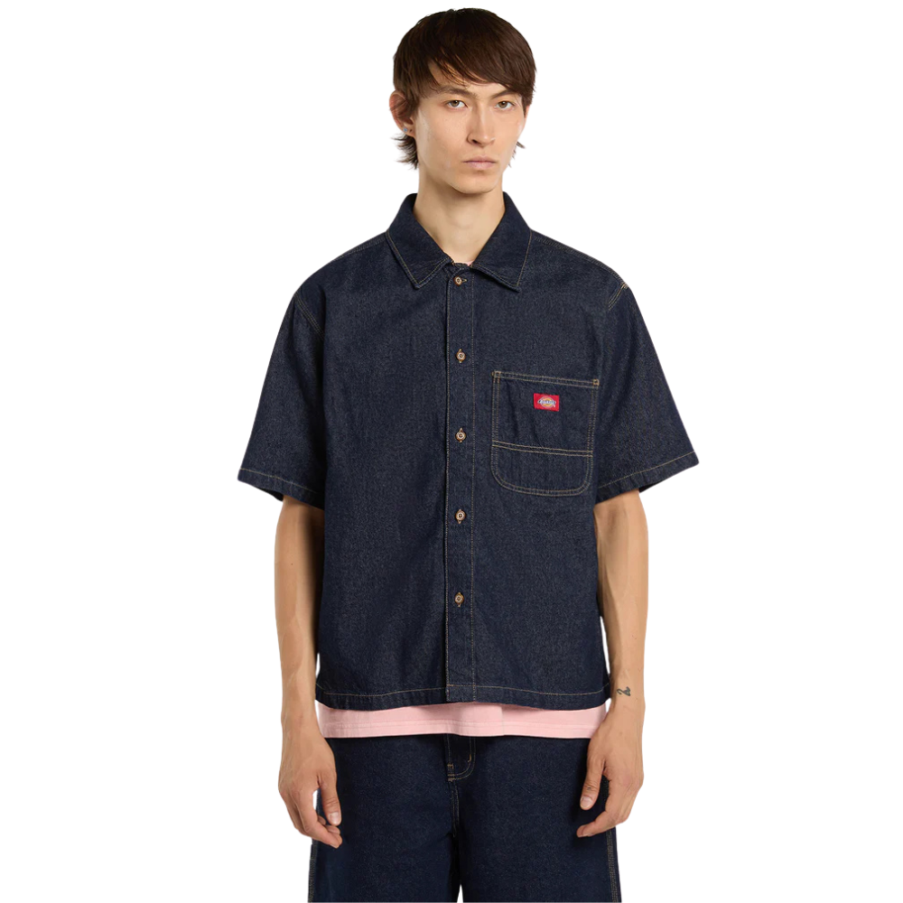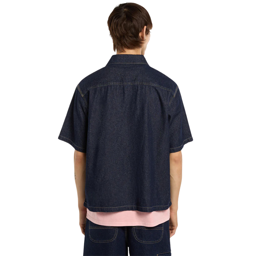 Lightweight and easy to wear, this short-sleeve denim shirt features a boxy fit for everyday comfort. Designed for layering in warm weather or wearing on its own, this simple shirt combines timeless style with durable cotton construction.