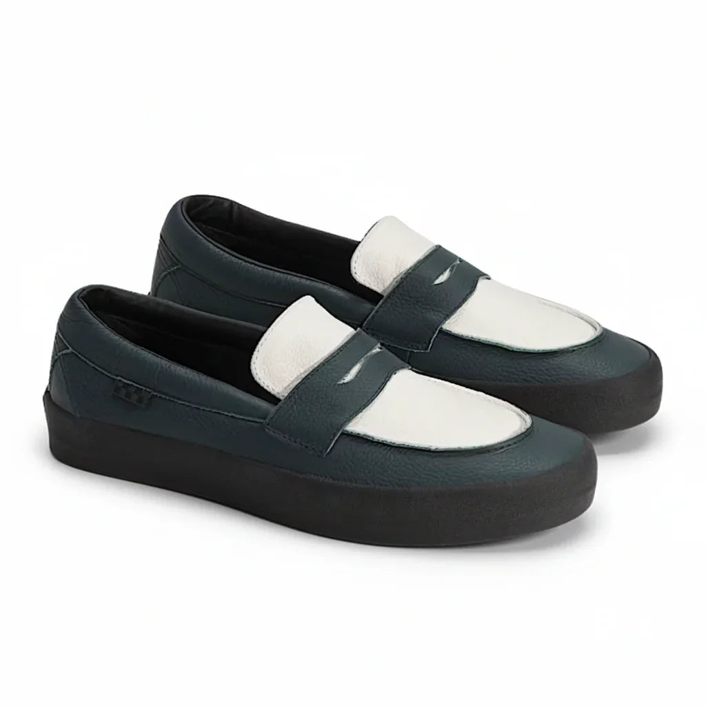 Step into skate-ready style with the Vans Skate Loafer — where retro loafer design meets skate performance. The premium leather upper combines classic slip-on styling with reinforced skate construction, while PopCush™ insoles, SickStick™ rubber waffle outsole, and vulcanized sole deliver grip, board-feel, and durability. Finished in Dark Forest Green for a sleek, versatile look.