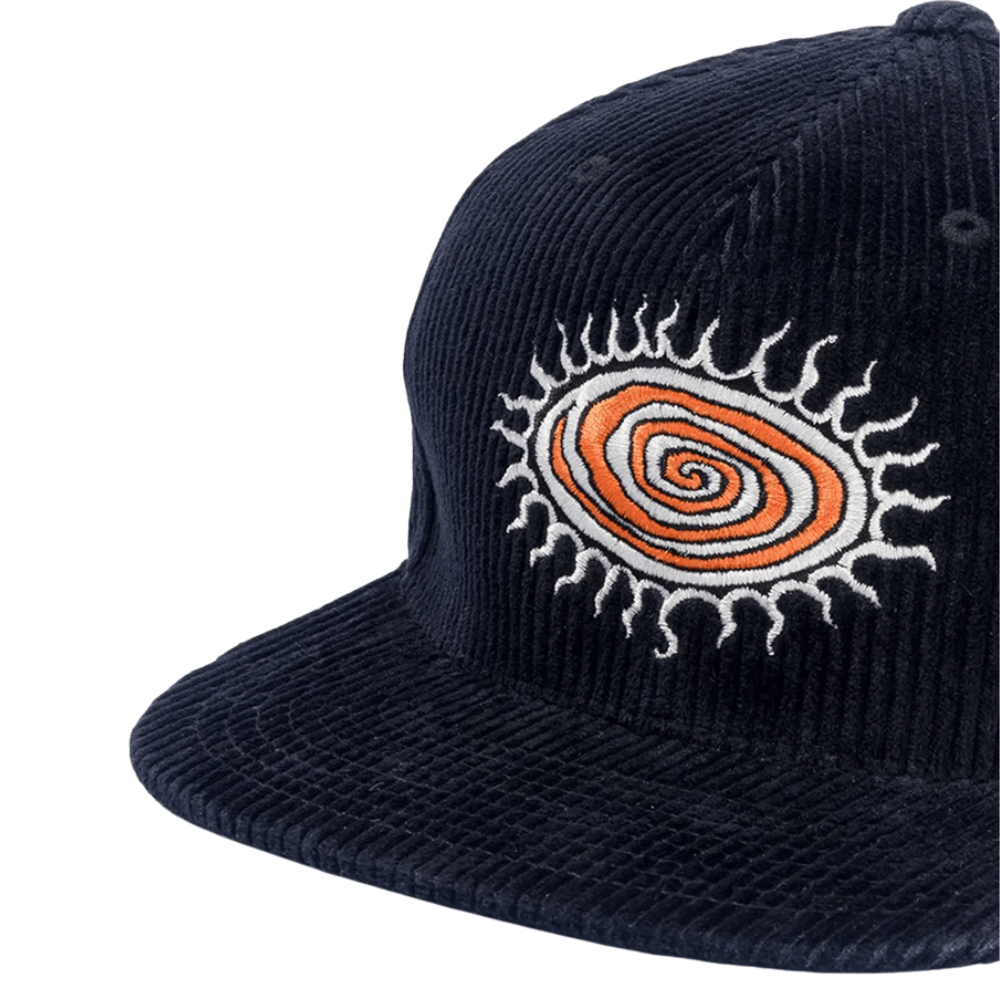 Step up your cap game with the Vans Sun Swirl Snapback – Black (VN000PNSBLK). This structured 5-panel snapback features textured corduroy construction, delivering vintage skate style with modern edge. The bold 3-colour embroidered “sun swirl” on the front and checker embroidery on the back pay tribute to Vans’ skate heritage. Finished with an adjustable snapback closure for a custom fit.